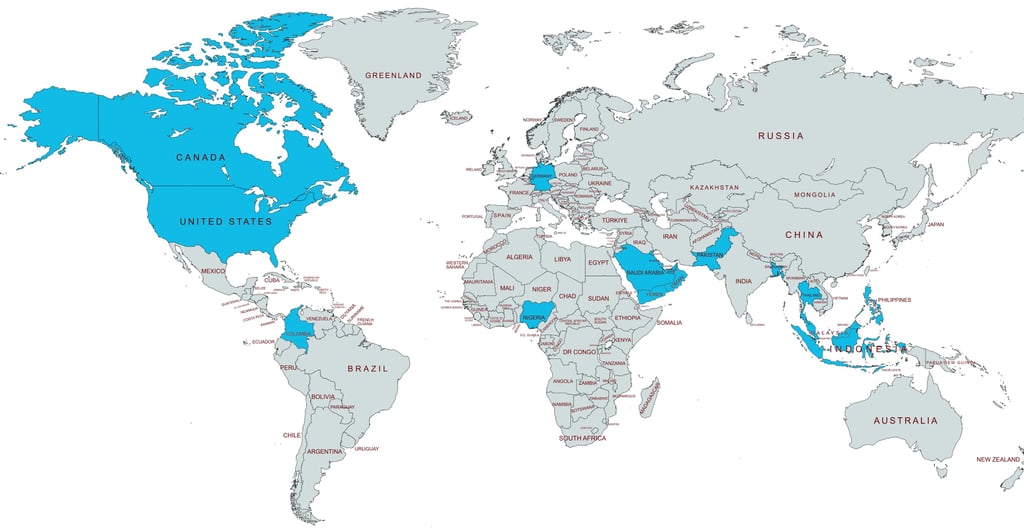 USA | Canada | Pakistan | Saudi-Arabia | UAE | Qatar | Bahrain | Oman | Singapore | Malaysia | Indonesia | Philippines | Kuwait | Thailand | Nigerian | Bangladesh
