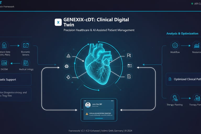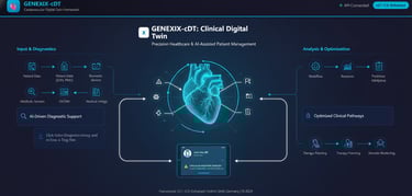 Clinical digital twin for healthcare systems, supporting diagnostics, workflow optimization, and AI-assisted patient management.